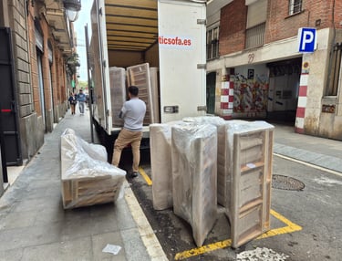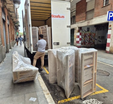 Cada sofá es cuidadosamente colocado y asegurado en el camión. El proceso de carga se realiza con una atención meticulosa, donde cada movimiento está diseñado para preservar la integridad de los productos durante todo el trayecto. La protección y el cuidado en cada etapa de la entrega son fundamentales en nuestro servicio especializado en el reparto y la instalación de sofás.
